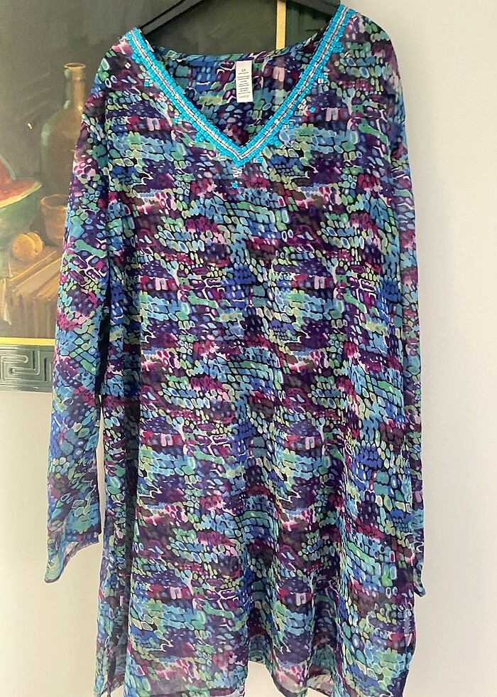 Az kullanılmış iki kol arası 65 cm. Boy 85 cm. Yanları yırtmaçlı