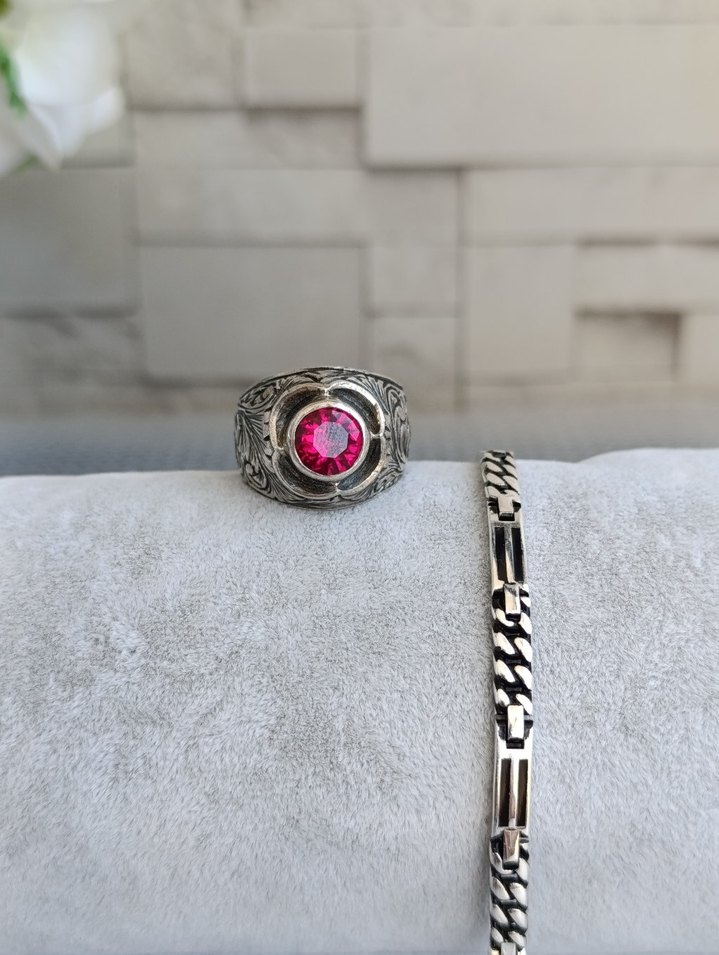 Yakut taşlı Gümüş Yüzük ve Gümüş bilekli