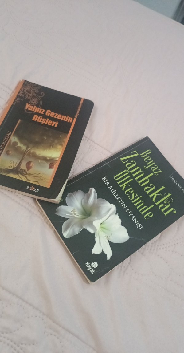 "Yalnız Gezenin Düşleri" ve "Beyaz Zambaklar Ülkesinde" adlı iki roman yer alıyor. Biri sürreal bir manzara, diğeri beyaz zambaklar görselleriyle kaplı.