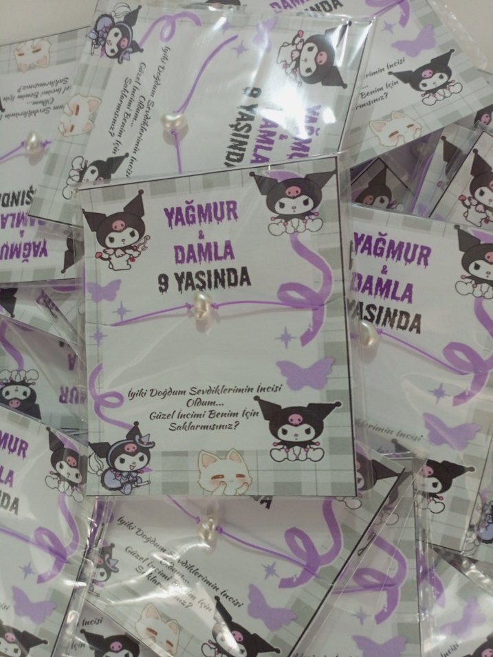 Kuromi konseptli yamuk incili bileklik 15 adet fiyatıdır. İstenilen konsept yapılır. Konsept değişikliğinde fiyat farkı vardır. #doğumgünü #kına #düğün #nişan #mevlid #kuromi