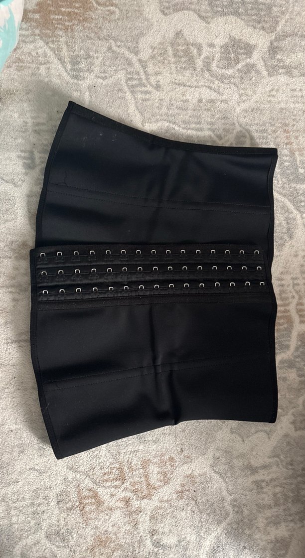 Siyah, normal midi uzunlukta, ayarlanabilir çoklu kanca kapamalı, düz desensiz korse biraz kullandım o yüzden uygun fiyata koyuyorum çengelleri sağlam kırığı yok