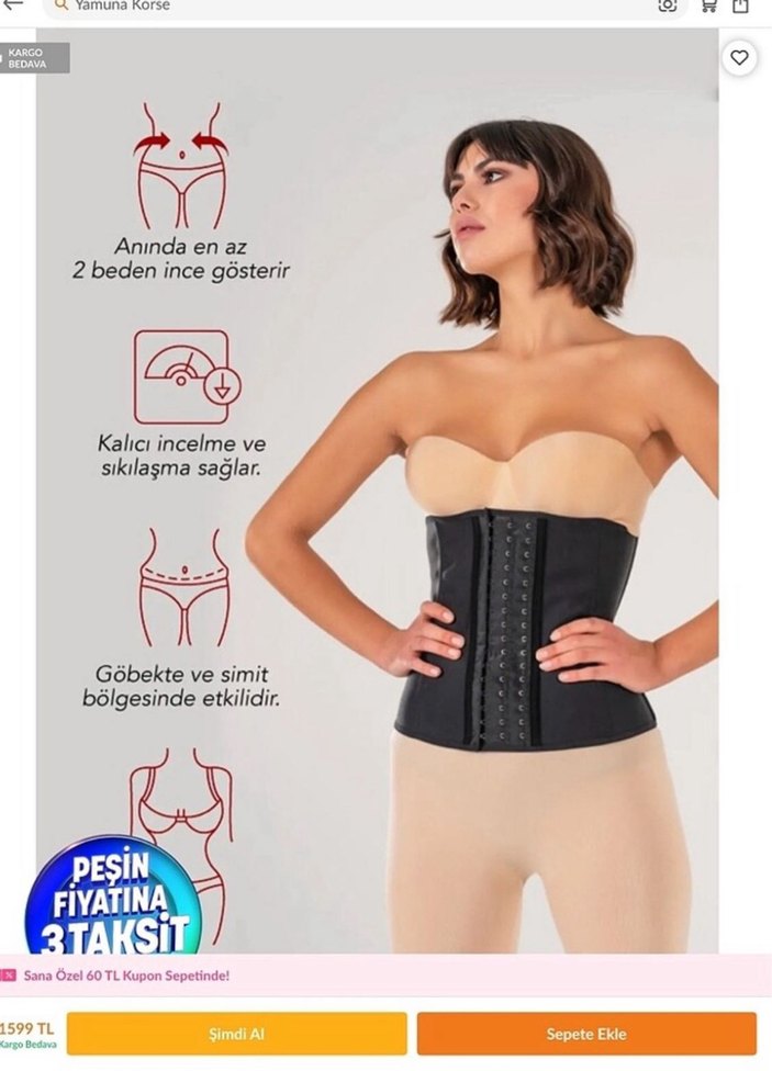 Siyah mini uzunlukta, vücuda oturan bu göbek korsesi anında en az 2 beden incelme sağlar. Kalıcı sıkılaşma ve şekillendirme etkisiyle göbek ve simit bölgesinde etkilidir.