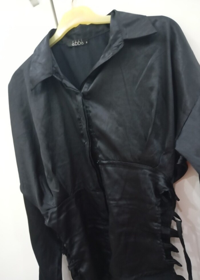 Yan detaylı saten gömlek