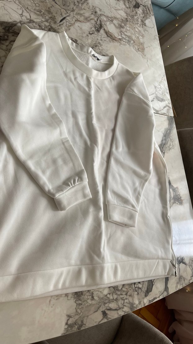 Yan Fermuarlı Beyaz Kadın Sweatshirt