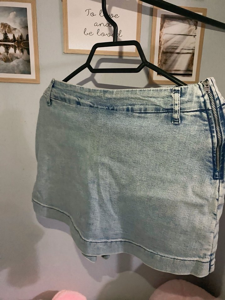Mavi renkte, yan fermuarlı, bol kesim midi denim şort, sade ve desen içermeyen tasarımla günlük rahat sokak giyimi için uygun.