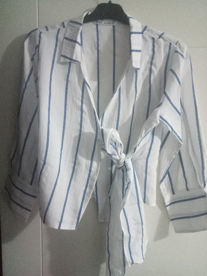 yandan bağlamalı Çizgili Beyaz Kadın Gömlek