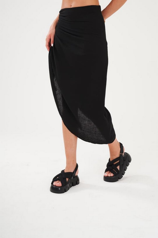 Yanı büzgülü uzun etek