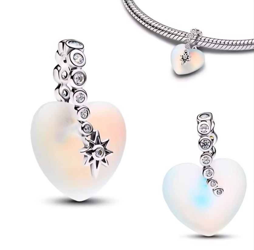 yansımalı kalp gümüş charm
