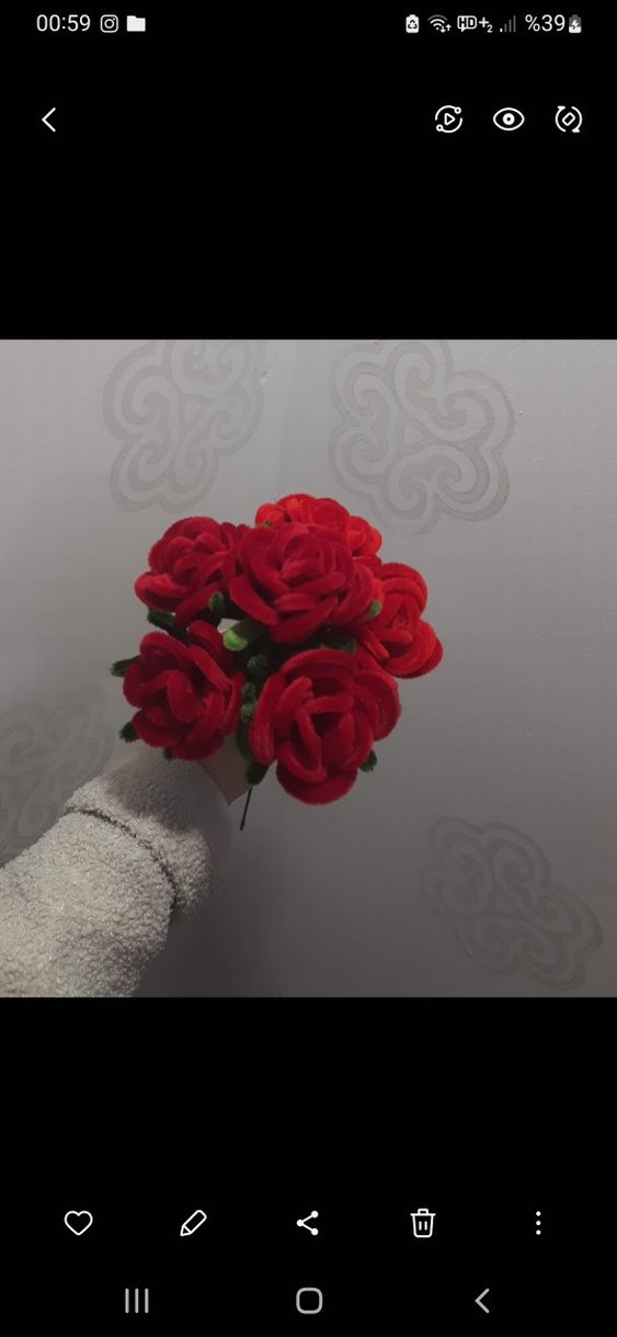 Şönilden gül demeti, tanesi 100tl sayıyla yapabilirim. 6 adet 550