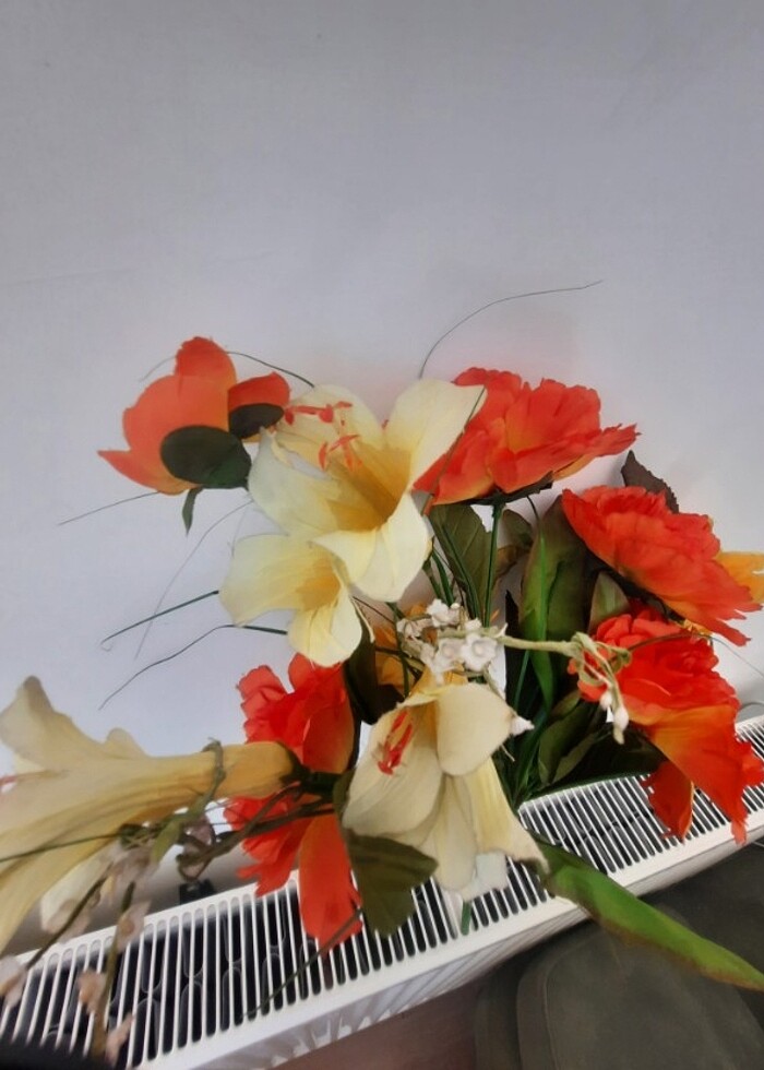 Yapay çiçek. Boy 52 cm.uzerinde 10 ad çiçek vardır.