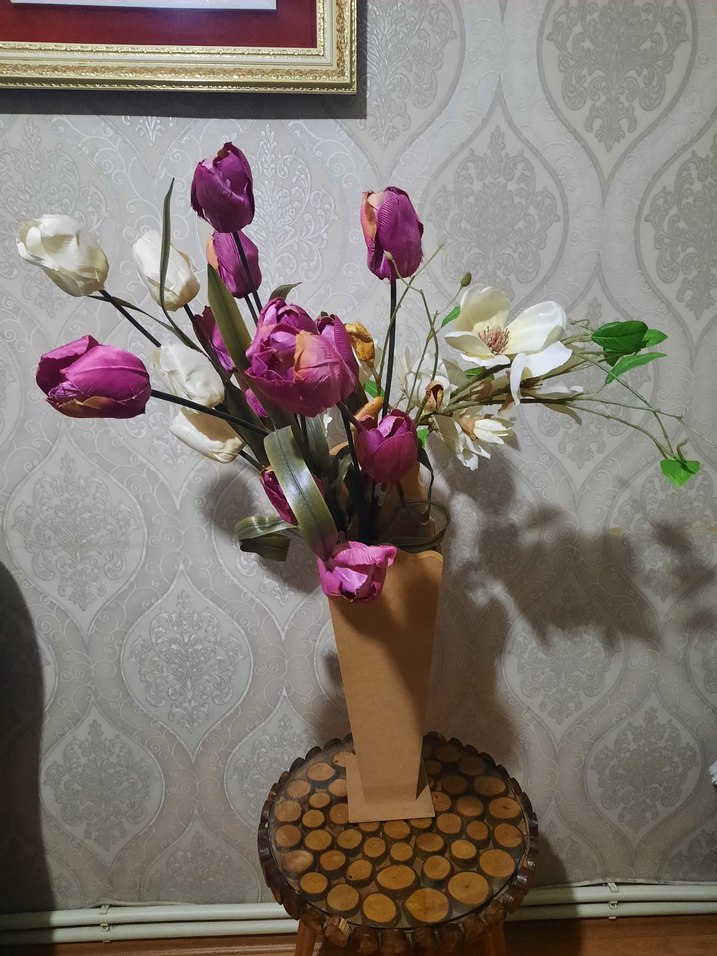 4 Adet çiçek var ve vazo dahil fiyattır. İstediginiz parça için ilan açabilirim. Bej vazoda pastel mor ve beyaz yapay çiçek aranjmanı, doğal görünümde yeşil yapraklarla tamamlanmıştır.