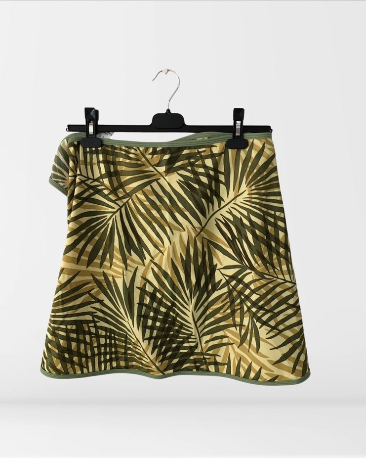 Sentetik kumaştan, yaprak desenli, yeşil plaj pareo Yandan bağlamalı Deforme yok #kadın #giyim #plaj #plajgiyim #yeşil #pareo #yazlık #bağlamalı #sentetik #deniz #yaprak #desenli