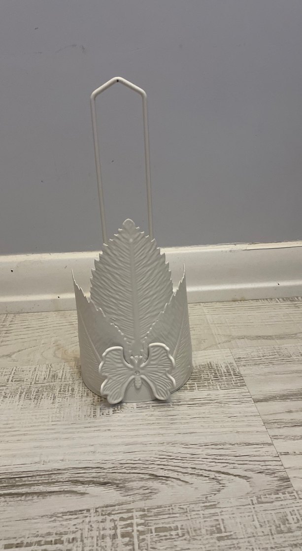 Yaprak desenleri ve kelebek detayı olan beyaz mumluk, kolay taşınması için elde tutma sapına sahiptir. Doğal bir dokunuş sağlar. ️