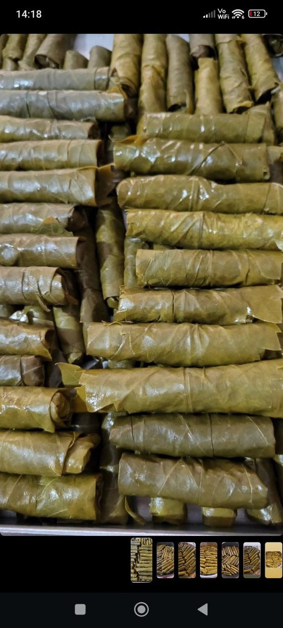 Parlak haki renkte, ince yapraklara sarılmış geleneksel yaprak sarmalar.