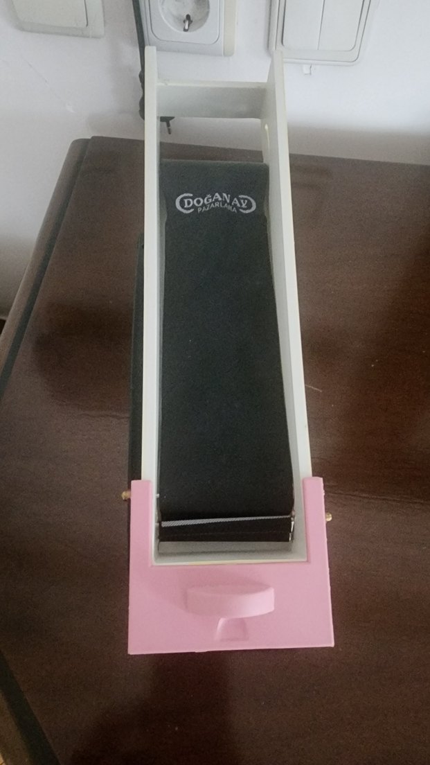 Pembe renkte, koyu baskılı yüzeye sahip DOGANAD marka yaprak sarma makinesi