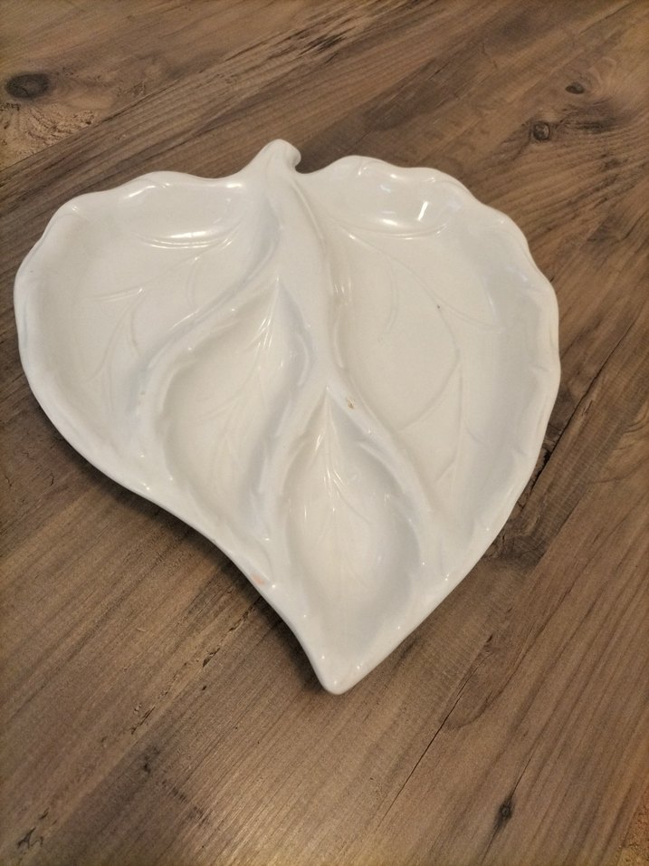 Bohem tarzda, yaprak şeklinde ve desensiz, beyaz seramik tabak. ️