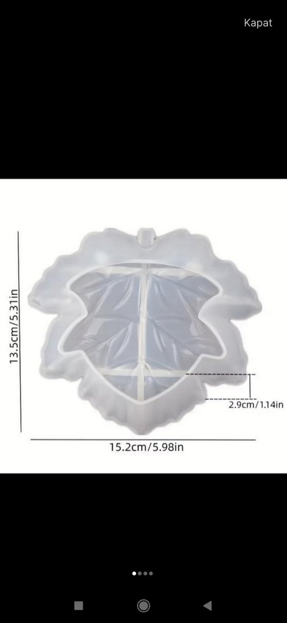 Yaklaşık 15.2cm x 13.5cm ölçülerinde, 2.9cm derinliğinde beyaz yaprak şeklinde silikon kalıbı.