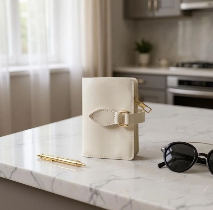 Beyaz deri kadin cüzdanı, modern klasik tasarım ve tokalı kapanışa sahip, günlük kullanıma uygun minimal ve şık görünümlü.