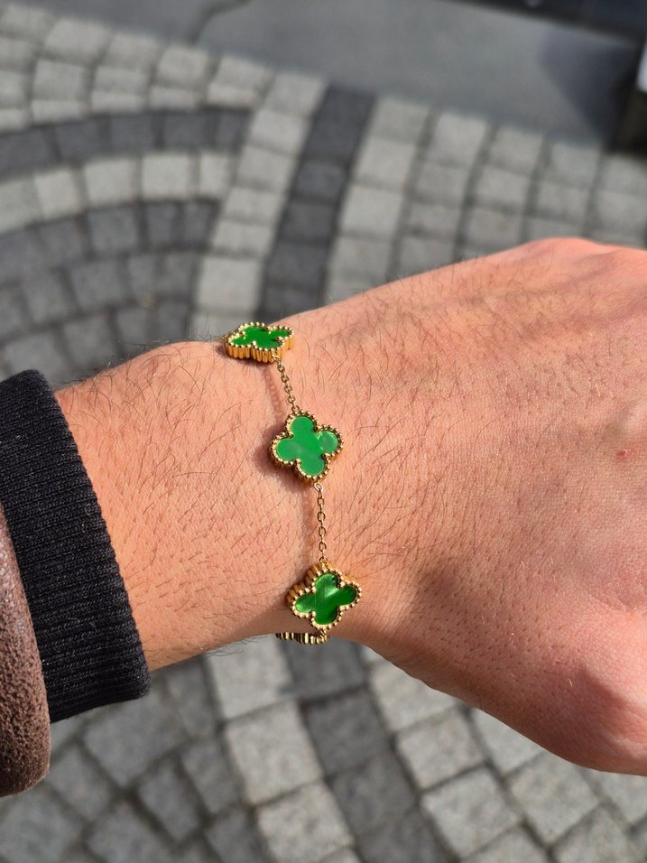 Yaprak Yeşili Van Cleef Unisex Çelik Bileklik