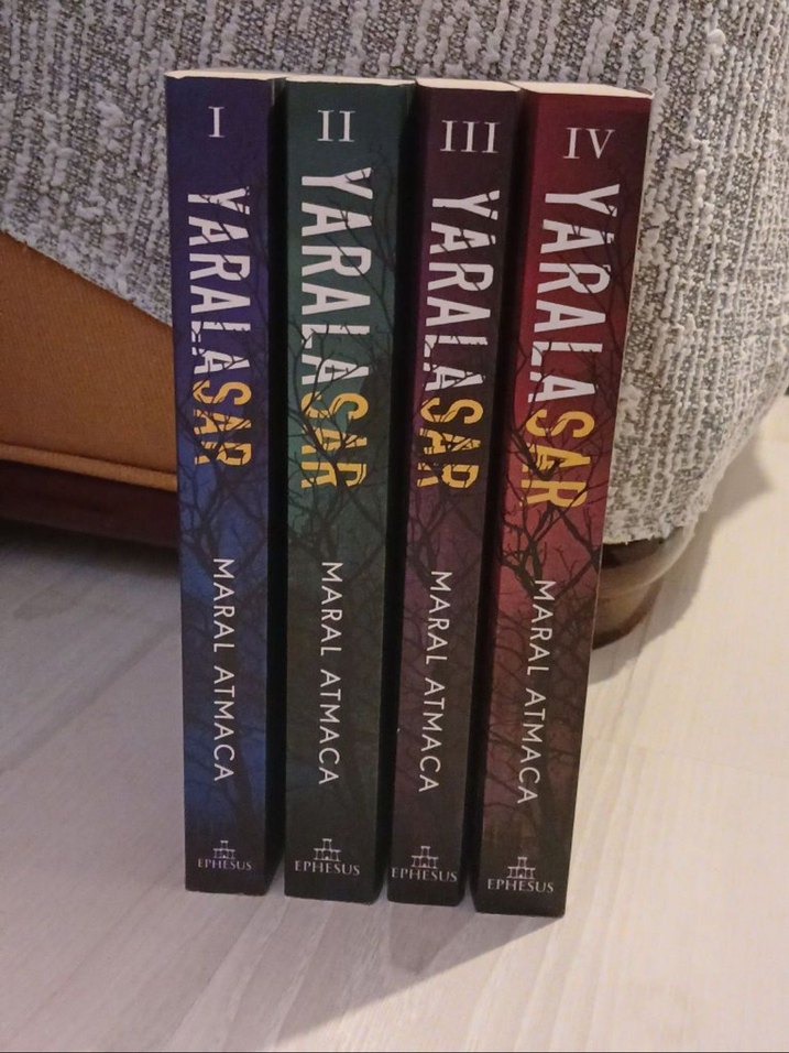 Maral Atmaca'nın Yaralaşar adlı 4 ciltlik roman seti, Ephesus yayınevi tarafından basılmıştır. Her cilt farklı renkte kapaklara sahiptir. ayraclari içindedir.