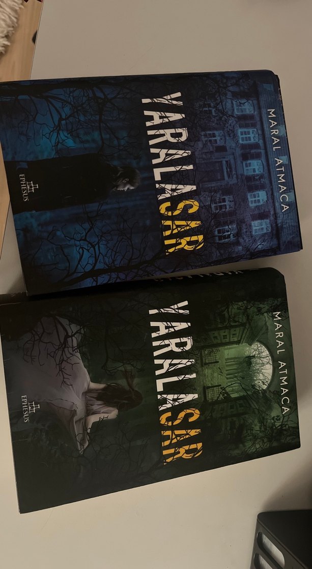 Maral Atmaca'nın 'Yaralasar' adlı iki romanı, karanlık ve gizemli kapaklarıyla dikkat çekiyor.