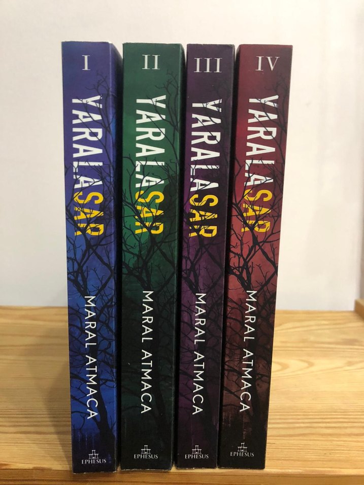 Maral Atmaca'nın Yaralasar roman serisi dört ciltten oluşuyor. Birinci cilt biraz eski,kitabın kenarlarında yıpranan yerler var.