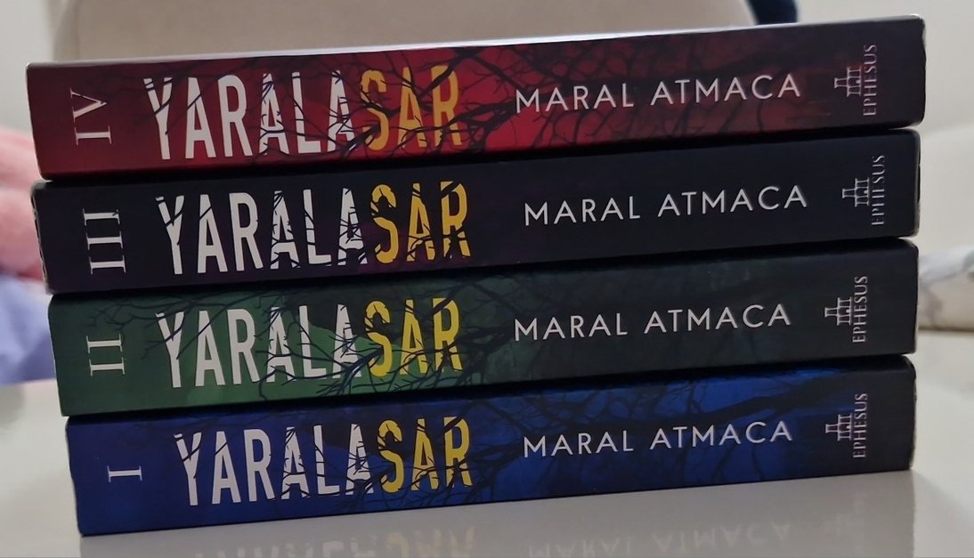 yaralasar dört ciltlik roman serisi, farklı kapak renklerine sahiptir.