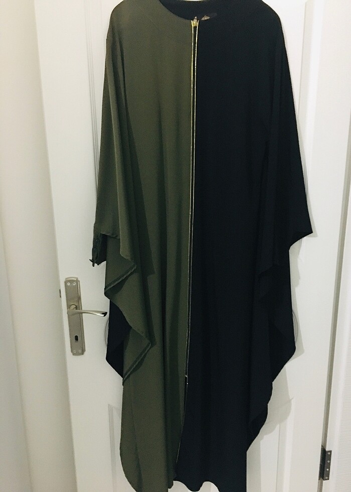 Yarasa kollu ferace ,38 bedendir .Geniş kalıptır.Giyimi çok rahattır .Az kullanılmıştır .Hiçbir yerinde kabarma,sökük yoktur .Yeni gibi tertemiz .