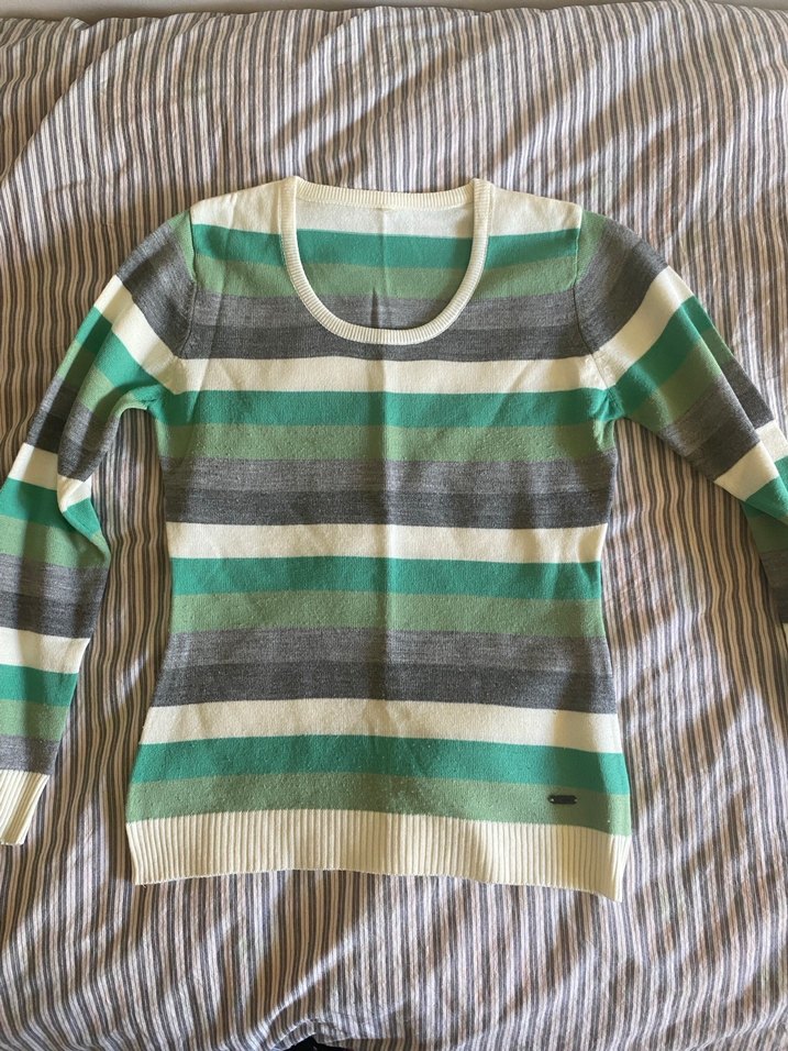 Yards Çizgili Uzun Kollu Yeşil Kadın Triko