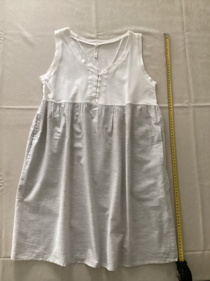 Yargıcı markasının zamansız çizgilerini taşıyan, konforlu bir elbise. Üst kısmı beyaz penye dokulu, etek kısmı ise gri-beyaz ince çizgili (pötikare benzeri) dokuma kumaştan oluşmaktadır. Yaz ayları ve sahil kullanımı için mükemmeldir. • Kumaş: %100 Pamuk (İç etikette belirtilmiştir, terletmez ve nefes alır) • Detaylar: * Ön kısımda zarif düğme detayları mevcuttur. • Yanlarda gizli cepleri bulunmaktadır (Kullanım kolaylığı sağlar)
