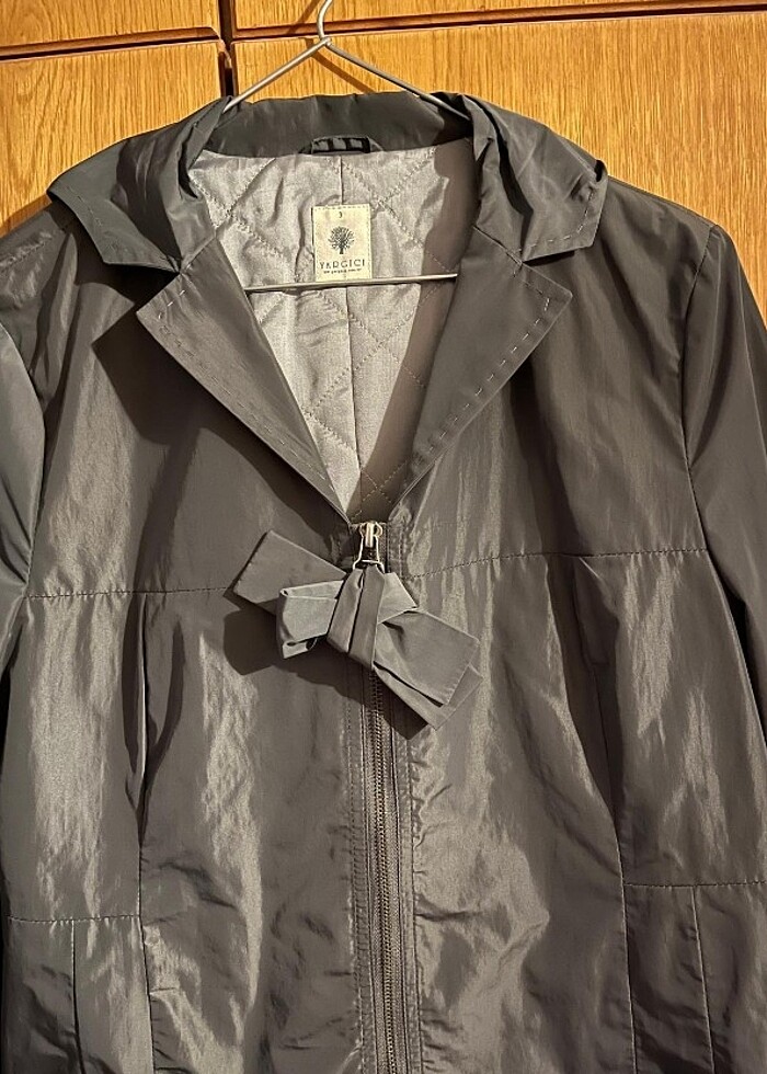 Yargici'dan aldigim yagmurluk su anda kullanmadigimdan satiliktir. Sadece bir iki defa giyilmistir. 3 beden (yaklasik 40 bedene denk gelmekte), gri, kapitone polyester ic astarli ve kapusonludur. Gogus 49 cm, bel 46 cm, boyu da 83 cm civarindadir.