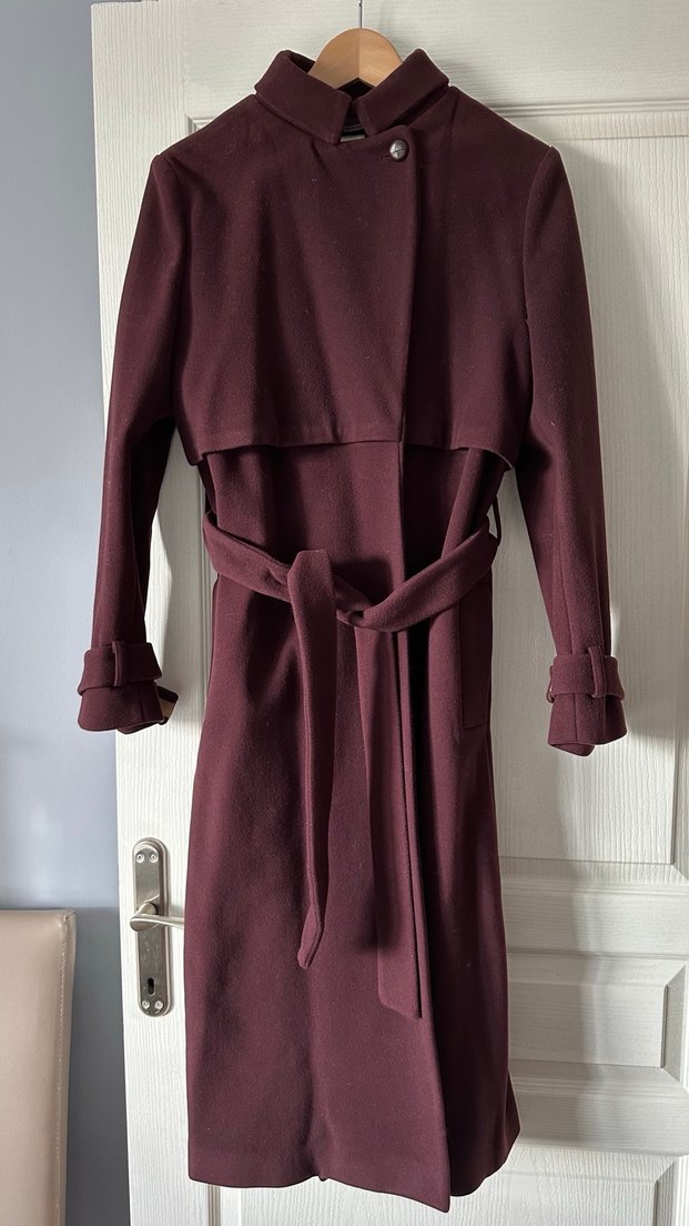 Trend renk mürdüm, resimde açık çıkmış fakat tam rengi 3. resimdeki gibidir. %80 yün, astarsız model karda giydim üşümedim. Yüzeyinde herhangi bir pamuklanma veya tiftik asla yok! Sadece arka yırtmaç içi gösterdiğim yerde son fotoğrafta tela hafif kalkmış ütüyle halledilir haricinde kusursuzdur. M-L uyumlu 70kiloyum çok rahat oluyor.