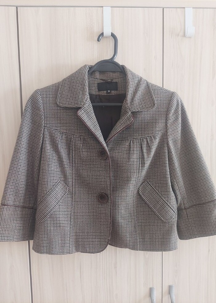 Yargıcı benzer blazer ceket modeli kısa ceket kahverengi bej gri