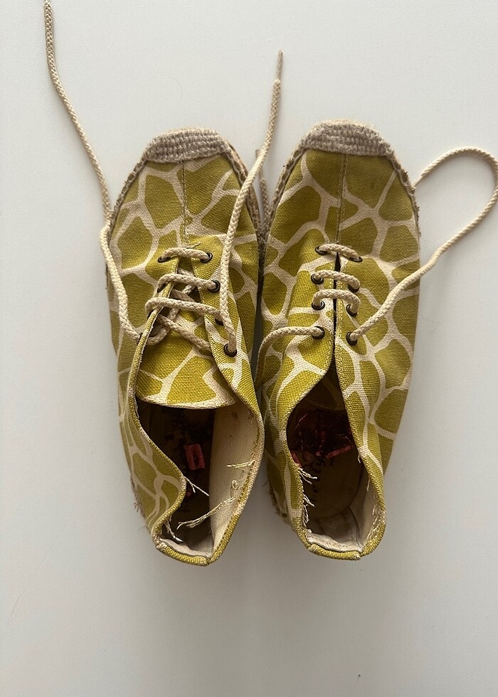 Yargıcı Espadril Yeşil 38. Kullanıma bağlı resimlerde görüldüğü gibi deformiteleri vardır.