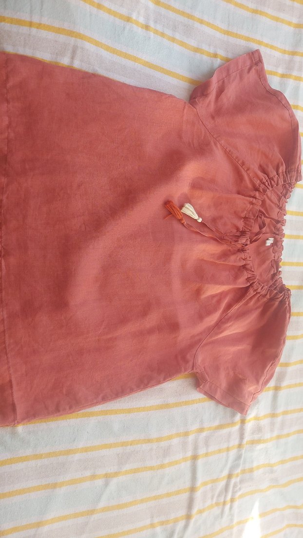 #Yargıcı kiremit renk %100 keten bluz, tekne yaka ve kısa kollu. Klasik Yargıcı kalitesi, ürün beden uyuşmazlığı nedeniyle çok az kullanıldı, ölçüler görselde eklidir.