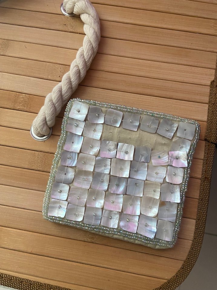 Boncuk işlemeli, nakış detaylı bej renkli örme kadın