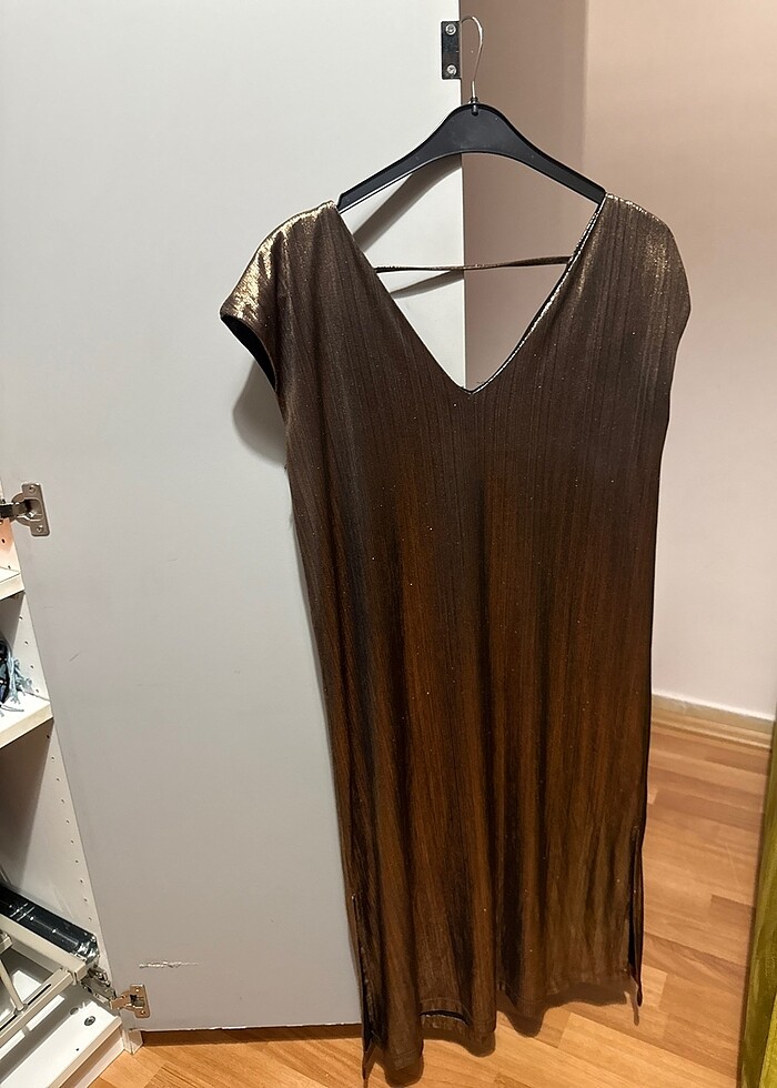 Yargıcı markalı dore renkte V yaka 34 beden gece elbisesi