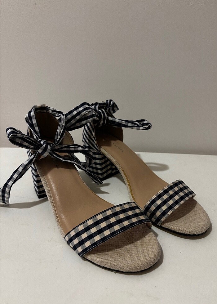 Yargıcı Kare Desenli Topuklu Sandalet - 40 - Lacivert