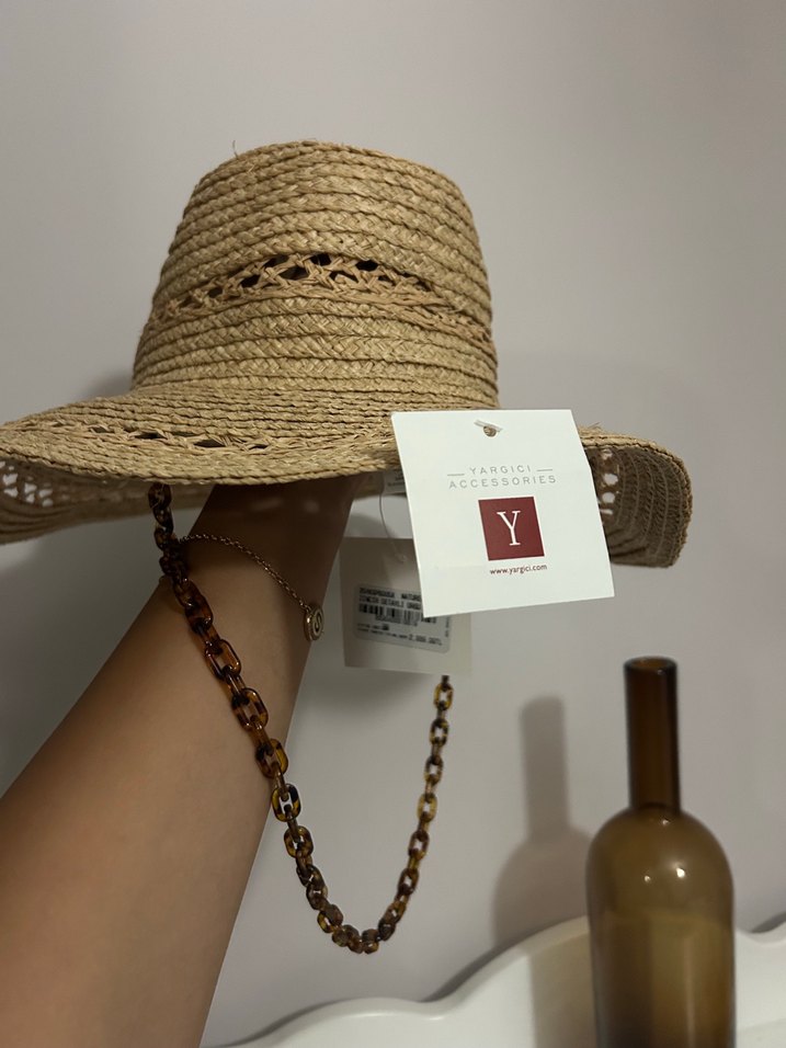 Hasır zincir detaylı şık ve farklı tasarım şapka. Yeni ve etiketli orjinal üründür.