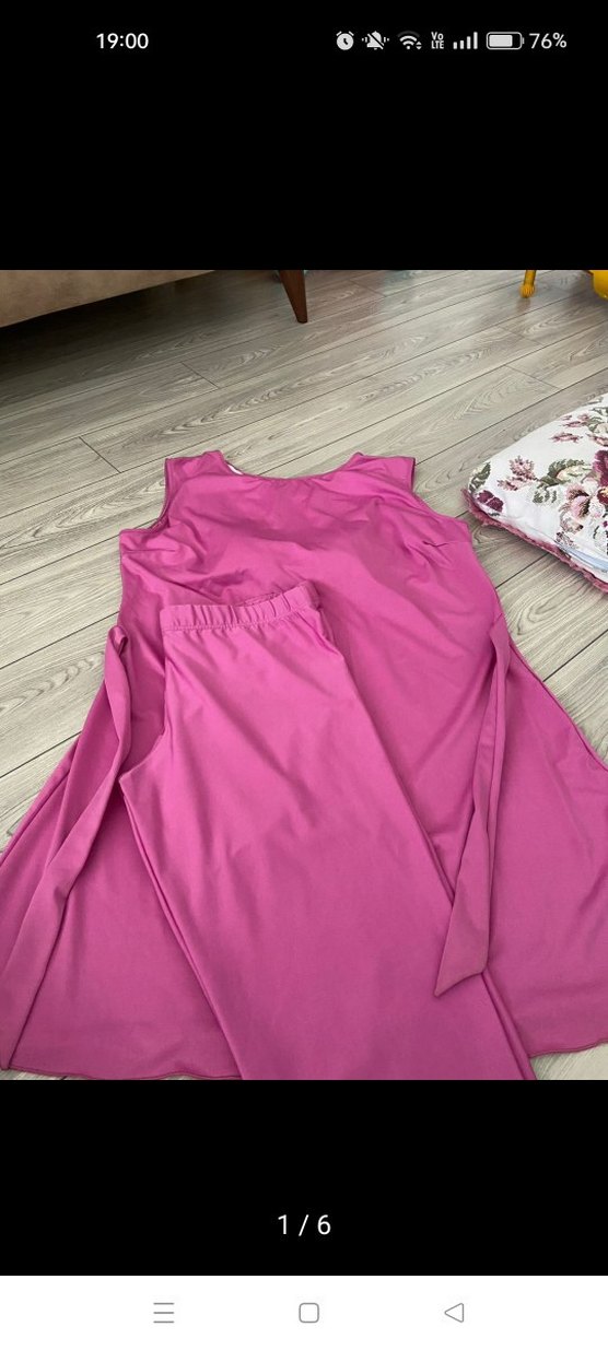 Parlak pembe renkte, uzun ve bol kesim hamile ve emzirme geceliği, kolsuz ve kayık yaka detaylıdır. beli bağcıklı. 48 beden esnek. rahat