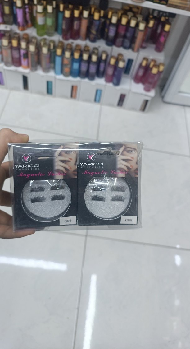 Yaricci markasına ait gri manyetik takma kirpikler, kolay takılıp çıkarılabilir ve tekrar kullanılabilir.
