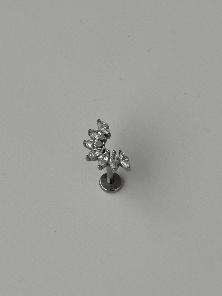 Gri renkte, parlak taş detaylı minimalist kadın piercing. Sade ve temel tasarımıyla dikkat çeker. Çelik materyalli gümüş renkli kararma, alerji, kaşındırma yapmaz.