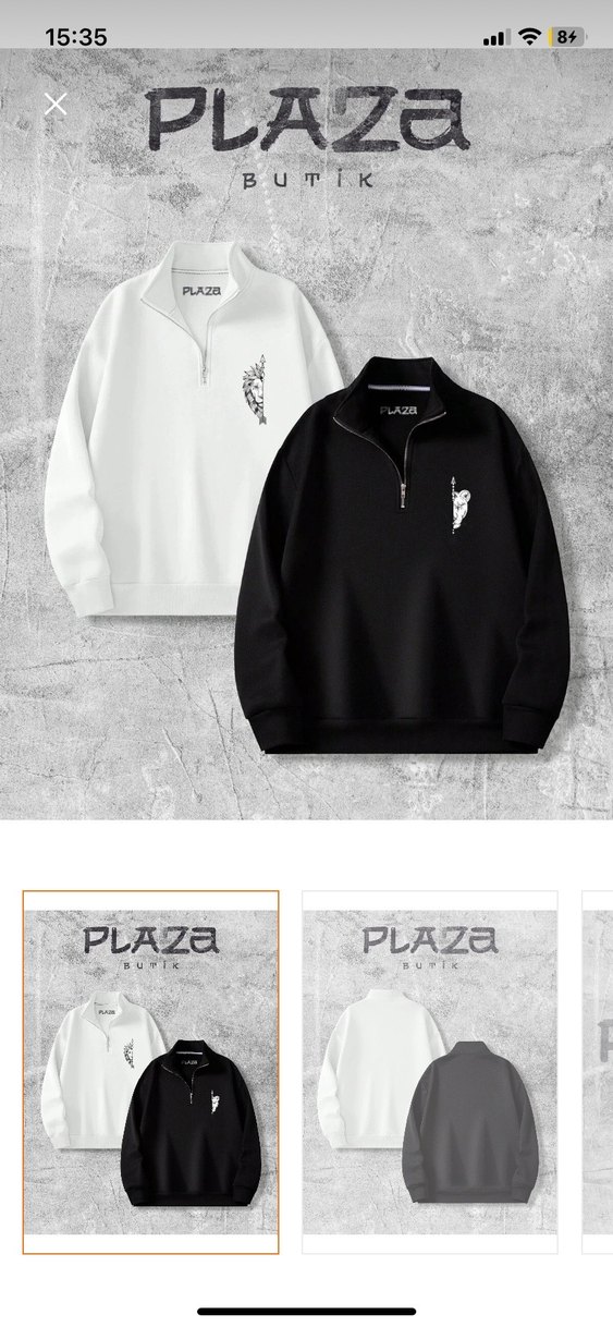 Yarım fermuarlı, yüksek yakalı ve baskılı desene sahip erkek sweatshirt. Uzun kollu ve bol kesimli, yumuşak ve sıcak kumaştan üretilmiştir. Günlük sokak stili için uygun. Çift kazağı - S beden kullanılmadı