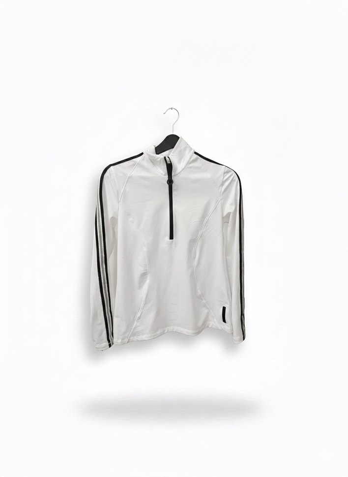 Yarım Fermuarlı Beyaz Spor Sweatshirt