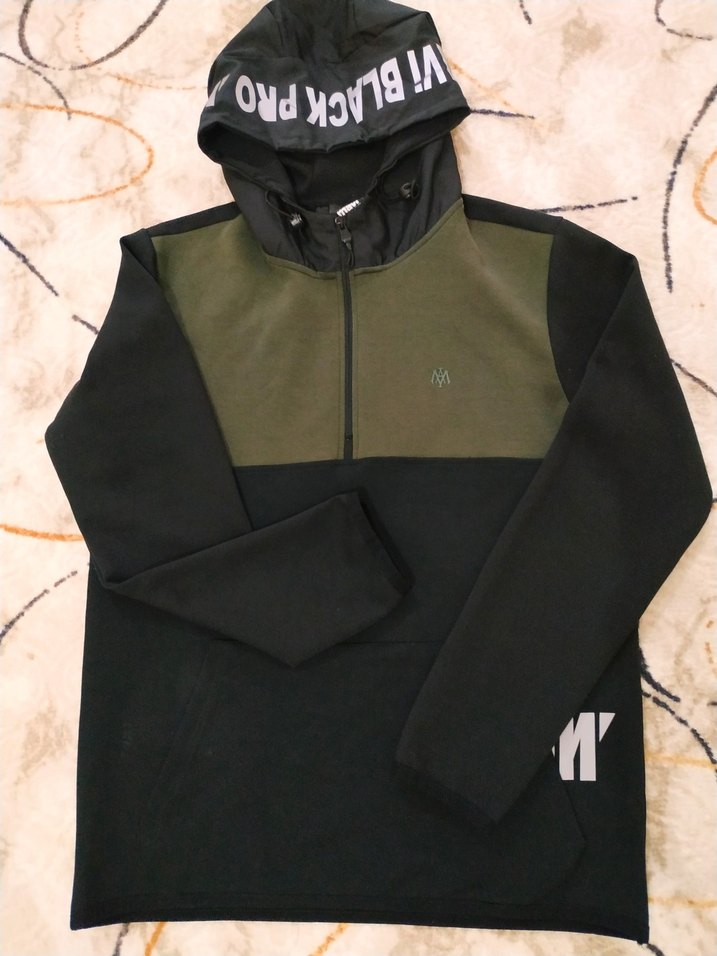 Yarım fermuarlı, kapüşonlu, uzun kollu ve yüksek yakalı erkek sweatshirt. XL beden sıfır yeni alındı hiç giyilmedi