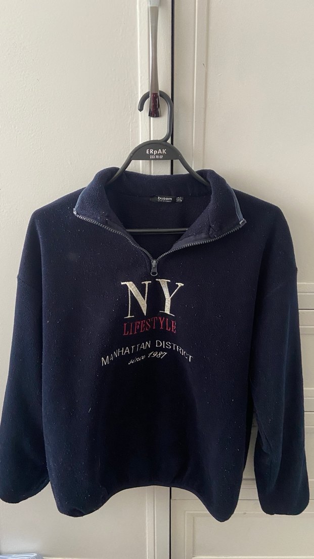 Yarım Fermuarlı Lacivert Kadın Sweatshirt