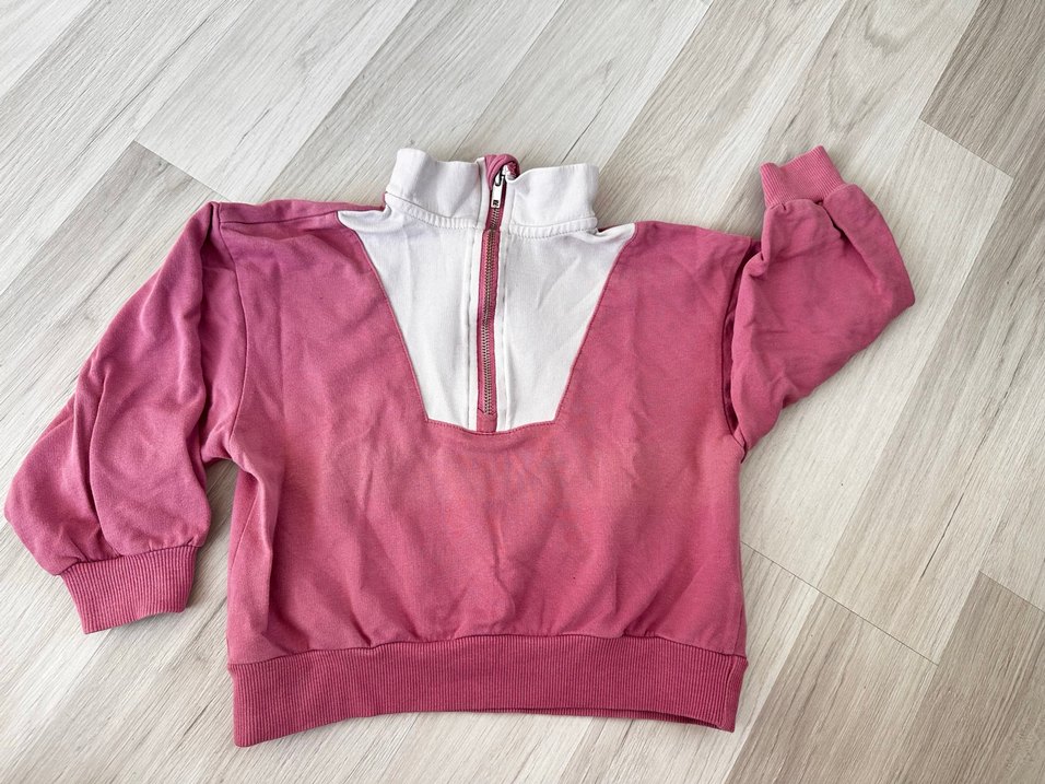 Yarım fermuarlı, yüksek yakalı pembe sweatshirt, uzun kollu ve yumuşak dokulu, rahat athleisure tarzı için uygun.