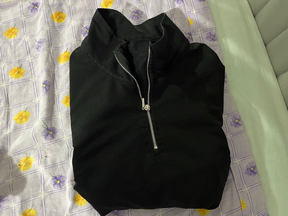Yarım Fermuarlı Siyah Kadın sweat