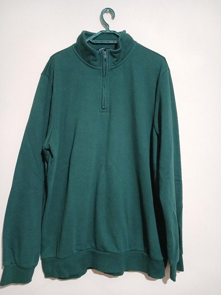 Yarım fermuarlı, yüksek yakalı ve uzun kollu erkek sweatshirtü. Yumuşak ve sıcak kumaştan, rahat ve salaş kesim. Günlük kullanıma uygun sade yeşil tasarım.