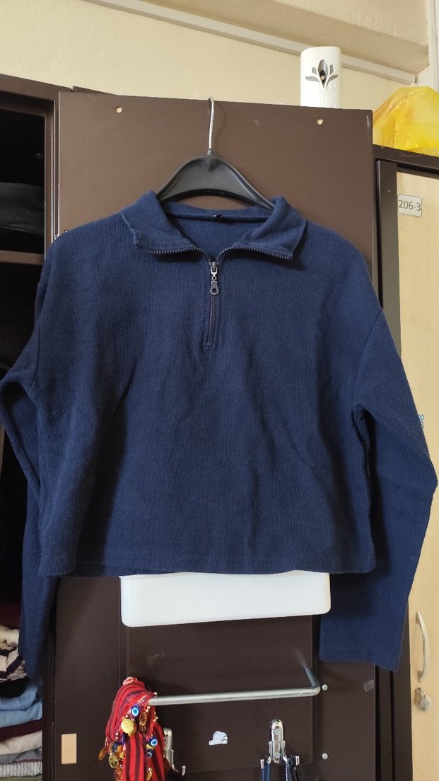 Yarım fermuarlı, yüksek yakalı ve uzun kollu kadın sweatshirtü. Yumuşak fleece kumaştan, bol kesim ve normal midi boyda. Günlük rahat sokak stili için uygundur.